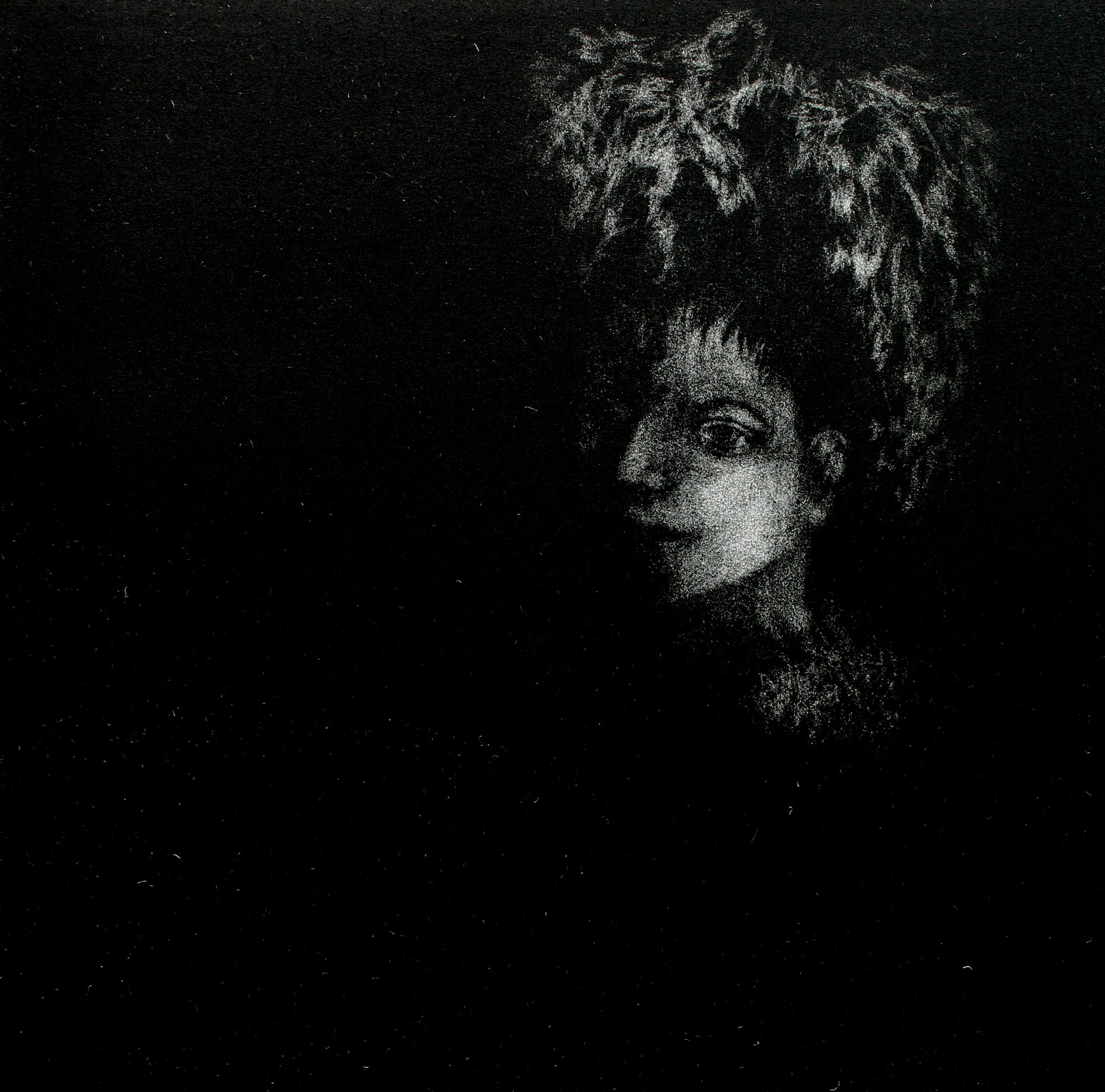 Gravure de Jocelyne Besson Girard Aquatinte 20X20– 40X40 cm encadré Cadre noir avec passe partout blanc.