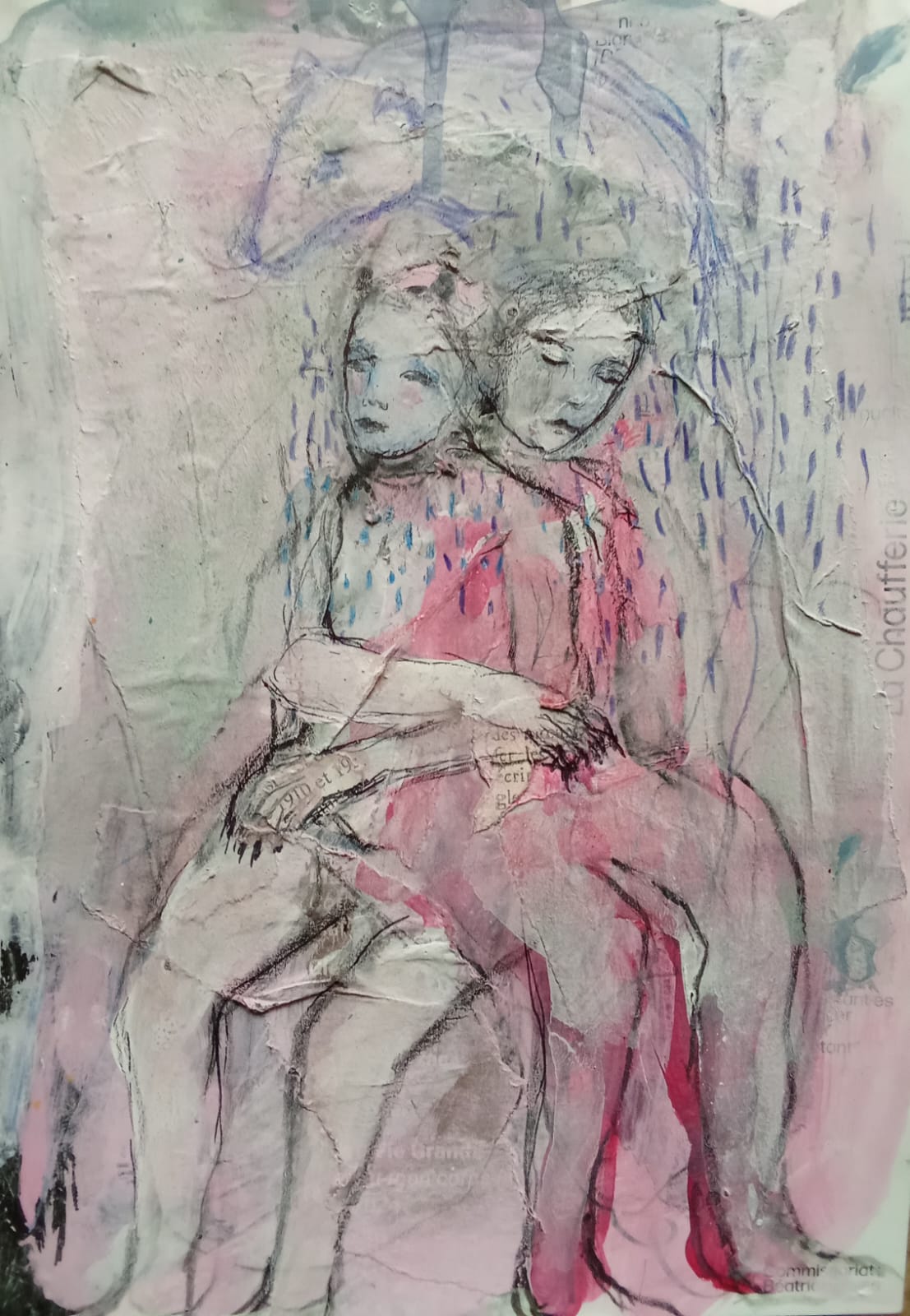 technique mixte sur papier cartonné