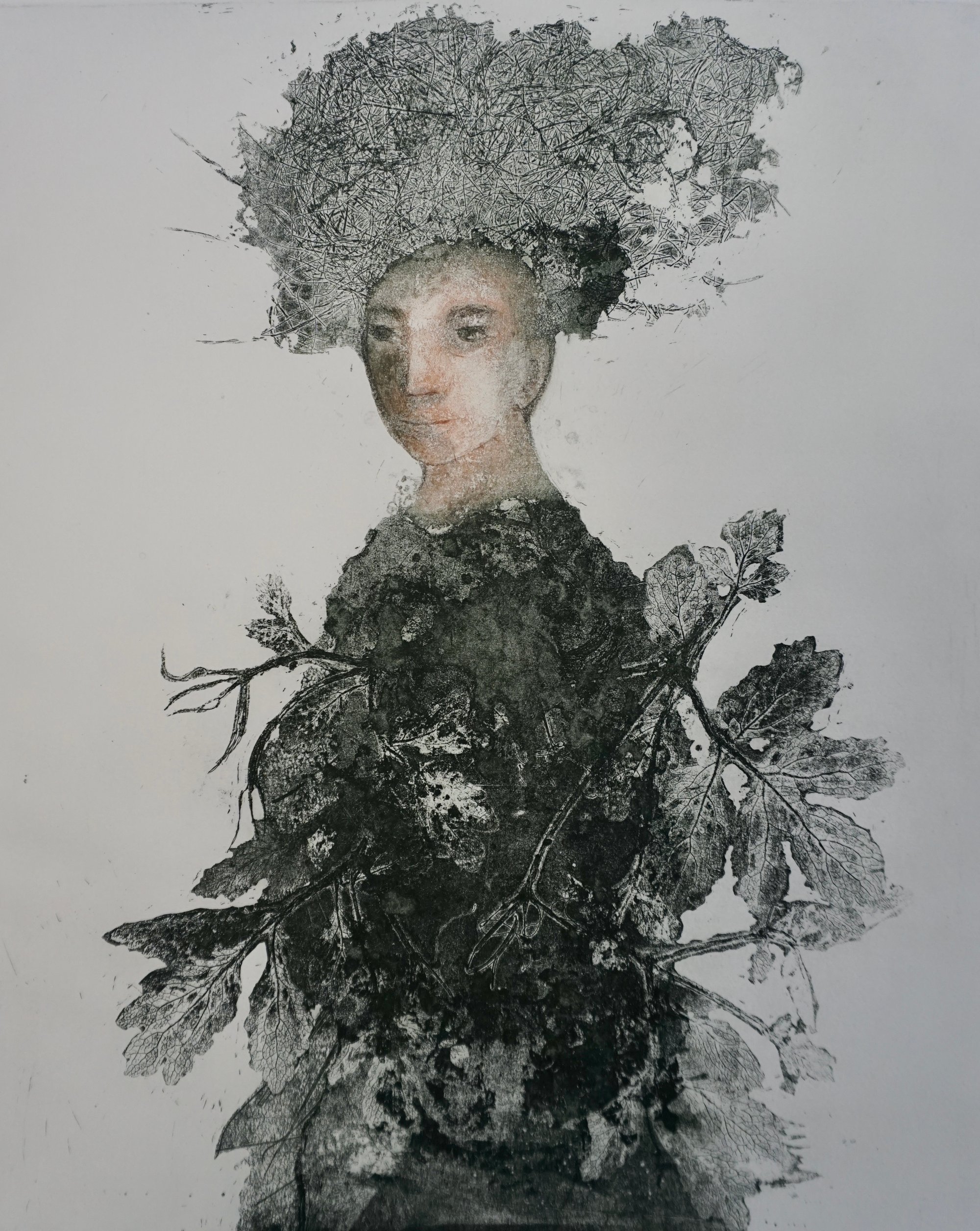 Gravure de Jocelyne Besson Girard. E/A .1 – Gravure – Vernis mou, pointe sèche – 50X40 – 70X50 (cadre compris) Cadre noir avec passe partout blanc.