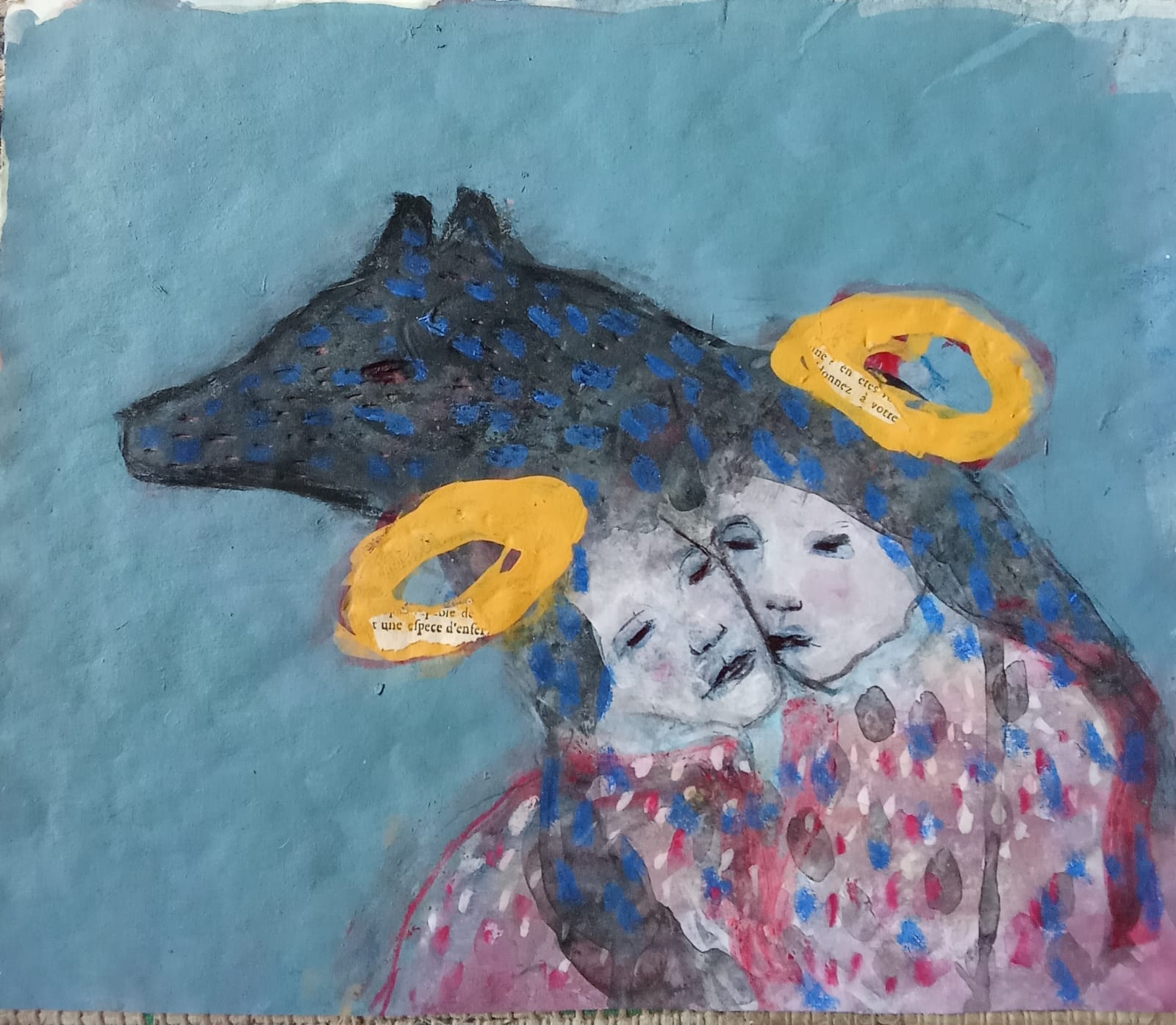 technique mixte sur papier peint