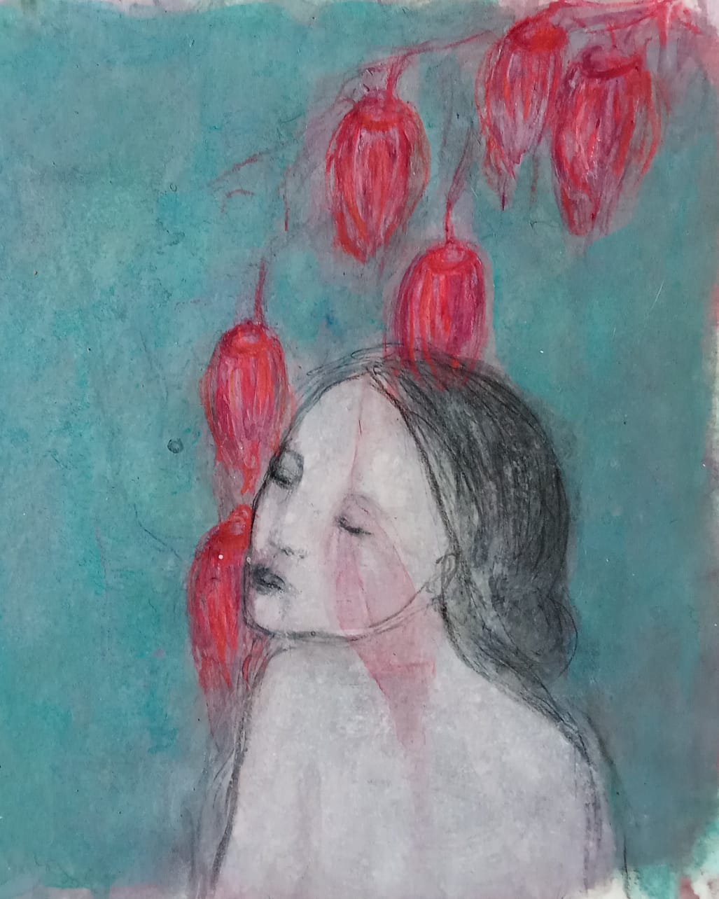 technique mixte sur papier peint